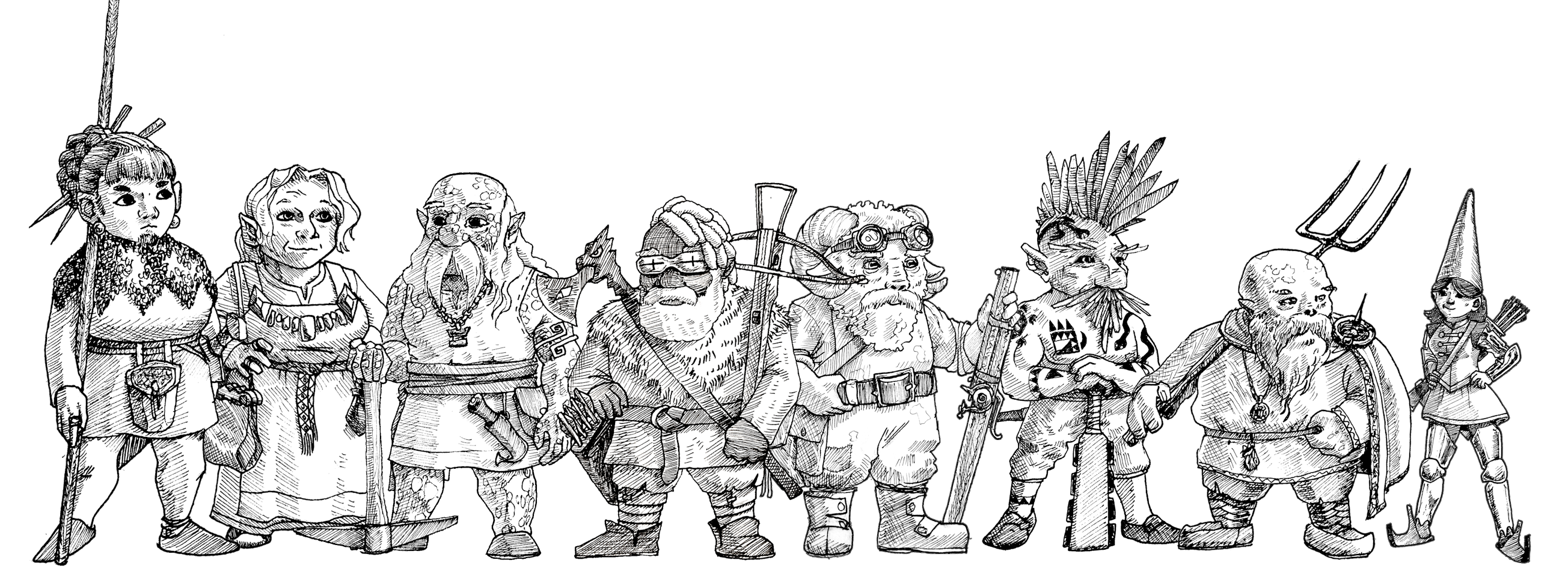As intrepid pioneers, you take the roles of dwarves. There are many ancestries and cultures within dwarvenkind, some exotic, some familiar. You might choose to be a humble hill dwarf of The Luddenav Brieg, or you might choose the red feathered Espantekatl. From The Fjallafolk of the mountainhomes or the Duergar of the deep places, a world of dwarvendom is open to you.